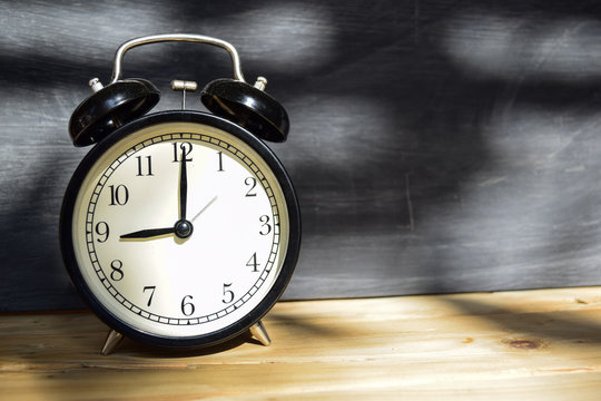 9 Am Pm Back To School Concept Alarm Clock On Wooden With Blackboard On Background Stock Photo Adobe Stock
