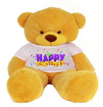 Buy Hug N Feel Soft Toys Big Teddy Bear For Gift Of Any Occasion Wearing A A œhappy Birthday Design T Shirt 5 Feet Yellow Online At Low Prices In India Amazon In